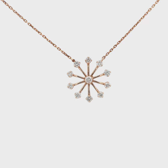 Delicate and radiant, this Snowflake Pendant captures the sparkling elegance of winter. Crafted in 18kt pink gold, the intricate snowflake design is adorned with round diamonds totaling .50ctw, each carefully set to create a luminous, frosted shimmer.