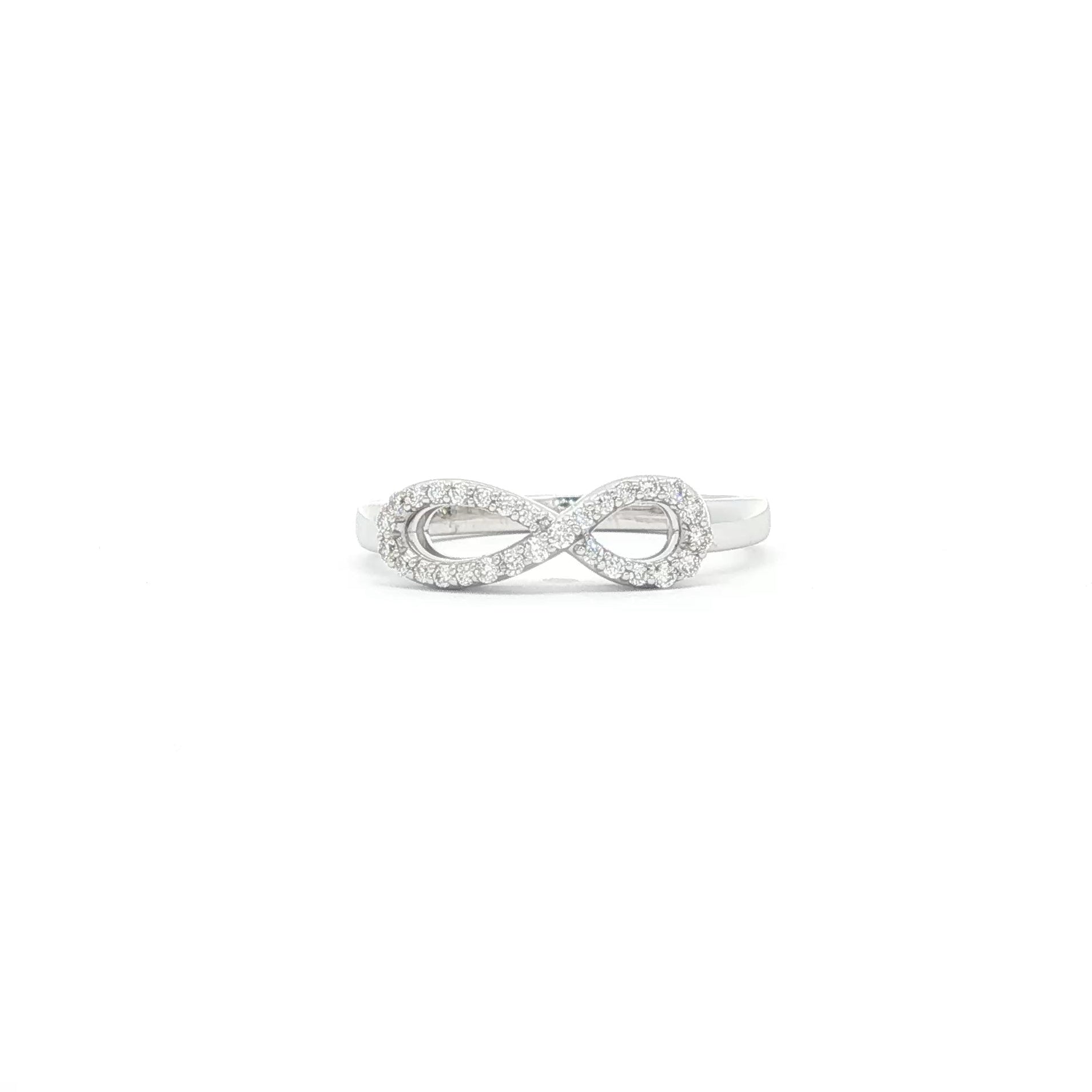 Graceful and refined, this Infinity Ring is a timeless symbol of everlasting love. Crafted in 18kt white gold, the elegant infinity design is adorned with 29 round brilliant diamonds, totaling .17 carats. Each diamond is hand-set to capture light from every angle, creating a radiant sparkle that endures.
