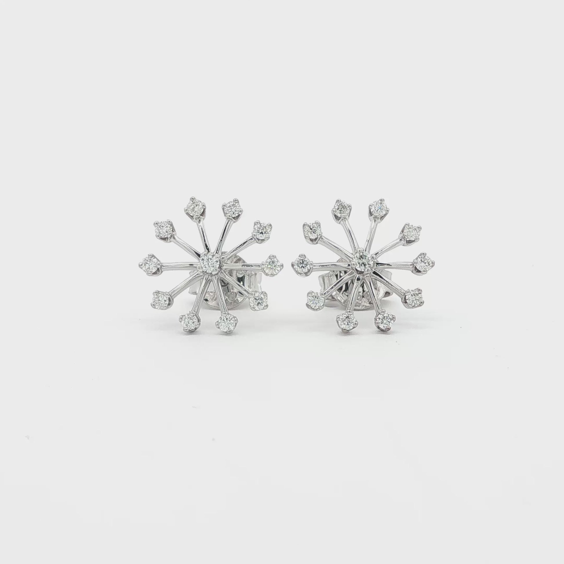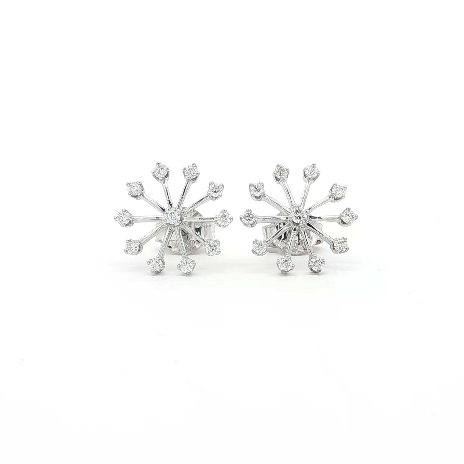 Delicate and radiant, these Mini Snowflake Earrings capture the sparkling elegance of winter. Crafted in 18kt white gold, each earring showcases an intricate snowflake design adorned with round diamonds totaling .35ctw, precisely set to create a luminous, frosted shimmer.