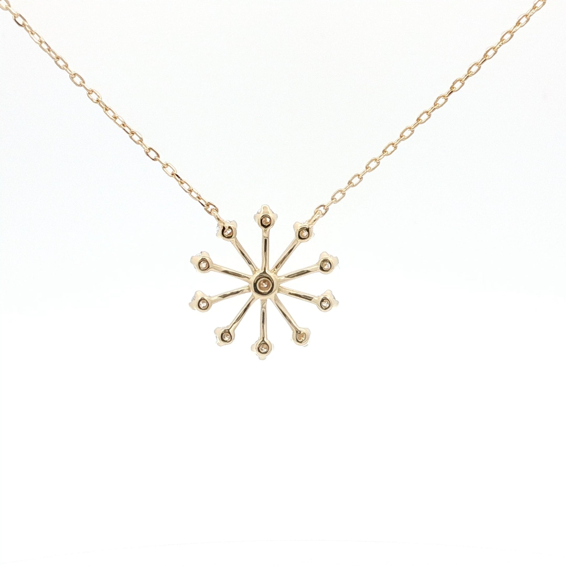 Delicate and radiant, this Snowflake Pendant captures the sparkling elegance of winter. Crafted in 18kt yellow gold, the intricate snowflake design is adorned with round diamonds totaling .30ctw, each precisely set to create a luminous, frosted shimmer.
