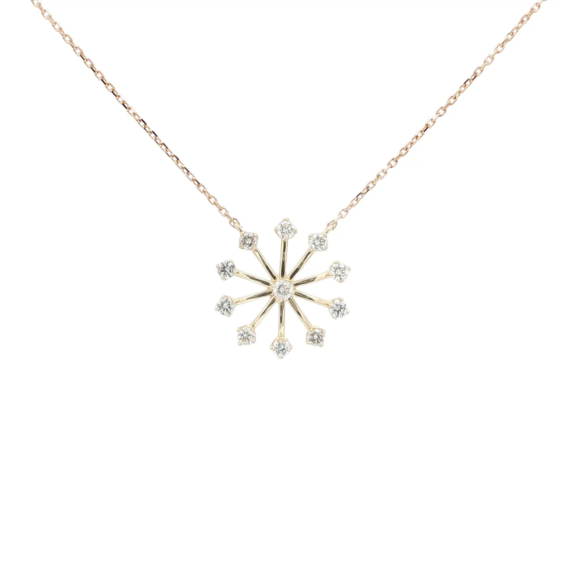 Delicate and radiant, this Snowflake Pendant captures the sparkle and symmetry of winter’s natural beauty. Crafted in 18kt yellow gold, the intricate snowflake design is illuminated with round diamonds totaling .46ctw, each carefully set to create a bright, frosted shimmer.